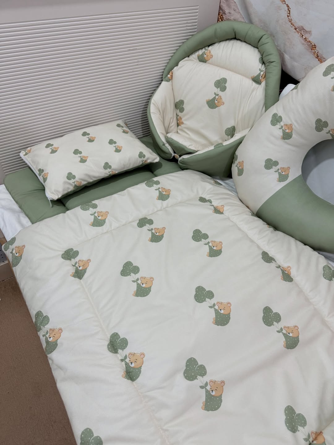 ست خواب نوزادی شامل ۱۰ تکه قنداق فرنگی قنداق سوئیسی. بالشت شیردهی تشک تعویض پوشک بالشت فرم دهی تشک گارد دار ست مسافرتی بالشت تشک لحاف پتو دورپیچ